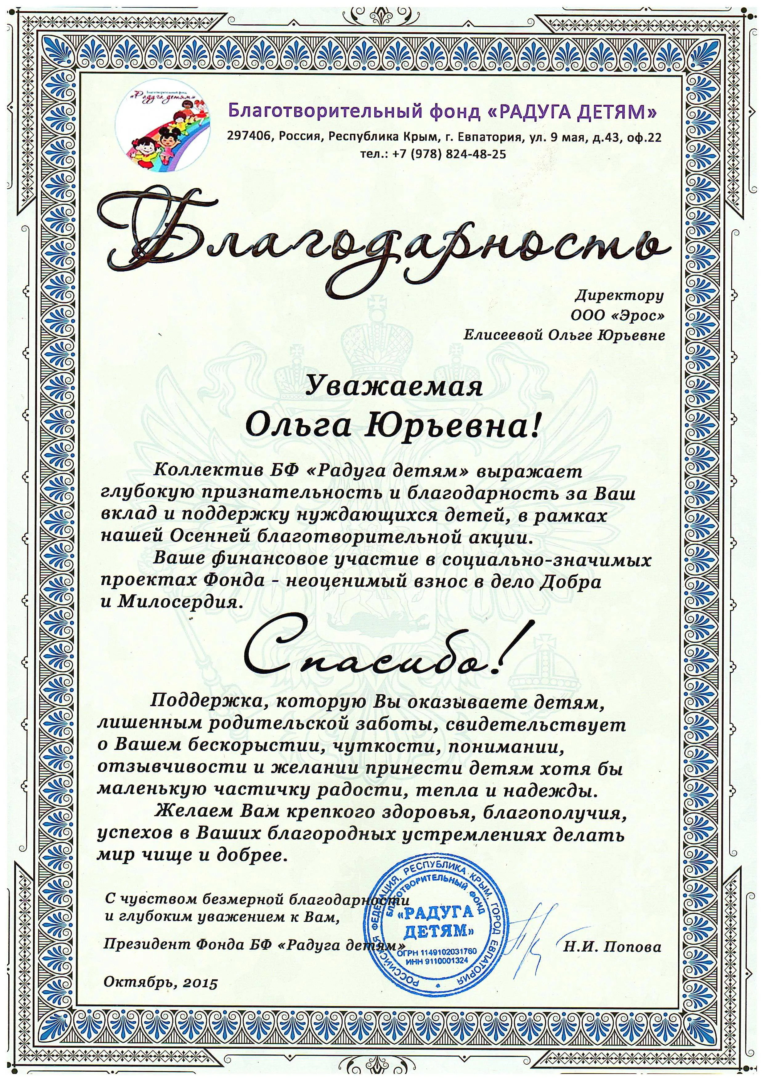Благодарность от коллектива БФ "Радуга детям" 1.6 мб